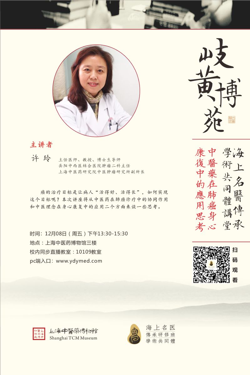 讲座:岐黄博苑|中医药在肺癌身心康复中的应用思考