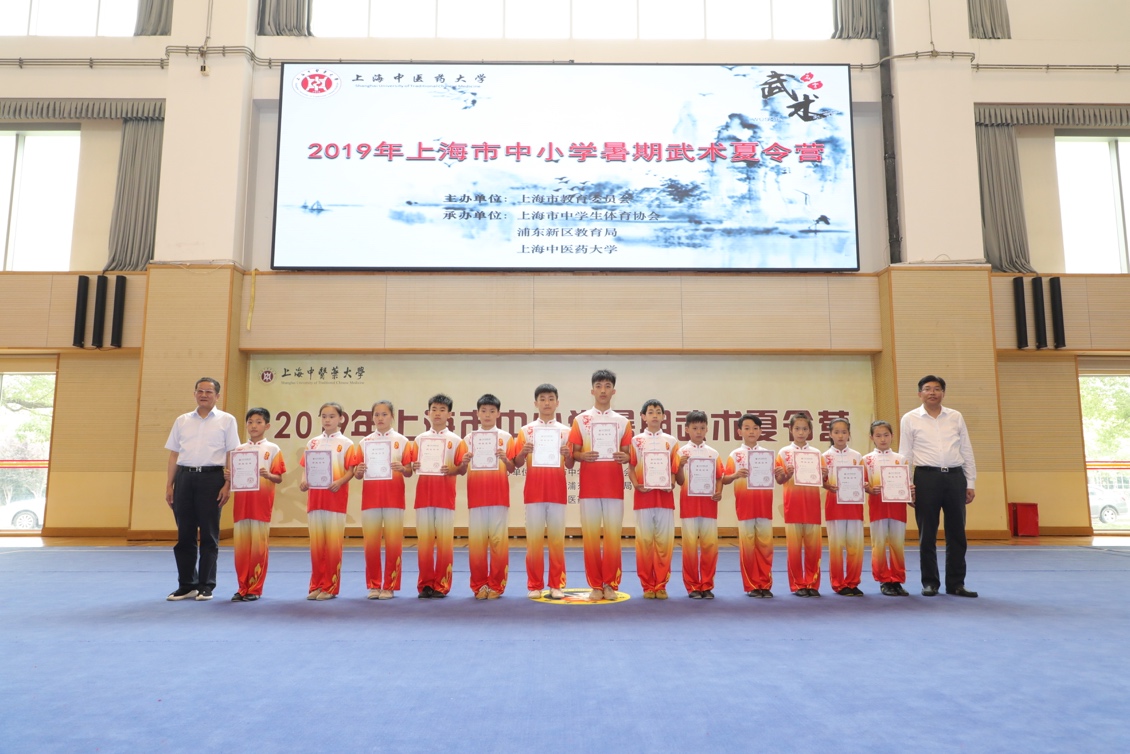 最后,出席典礼的领导分别为60余名学员们颁发了2019年上海市中小学暑期武术夏令营结业证书并合影留念。