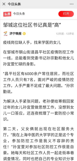 19级护理(中外合作)班的孙宜萱,她所在的山东省济宁市邹城市钢山街道昌平社区有6000余户常住居民,而社区工作人员只有7名,面对严峻的疫情,防控工作人手不足是亟需解决的问题。作为一名护理专业的大一新生,不能奋战在湖北一线,孙宜萱便和在街道社区工作的父亲携手上阵,学以致用,并动员家人和社区居民一起帮忙,防控疫情。《济宁晚报》也对他们这对共同防疫抗疫的父女进行了采访报道。对于孙宜萱而言,张贴通知、入户宣传、统计数据、绘制表格、电话核实都是她的志愿服务日常。在接受采访时,她说:“我在BEAT365英国官网就读护理专业,参加防控工作是我义不容辞的责任。在疫情防控工作中,我从父亲和其他党员身上学到很多,要更加积极地贡献自己的力量,开学后就递交入党申请书!”