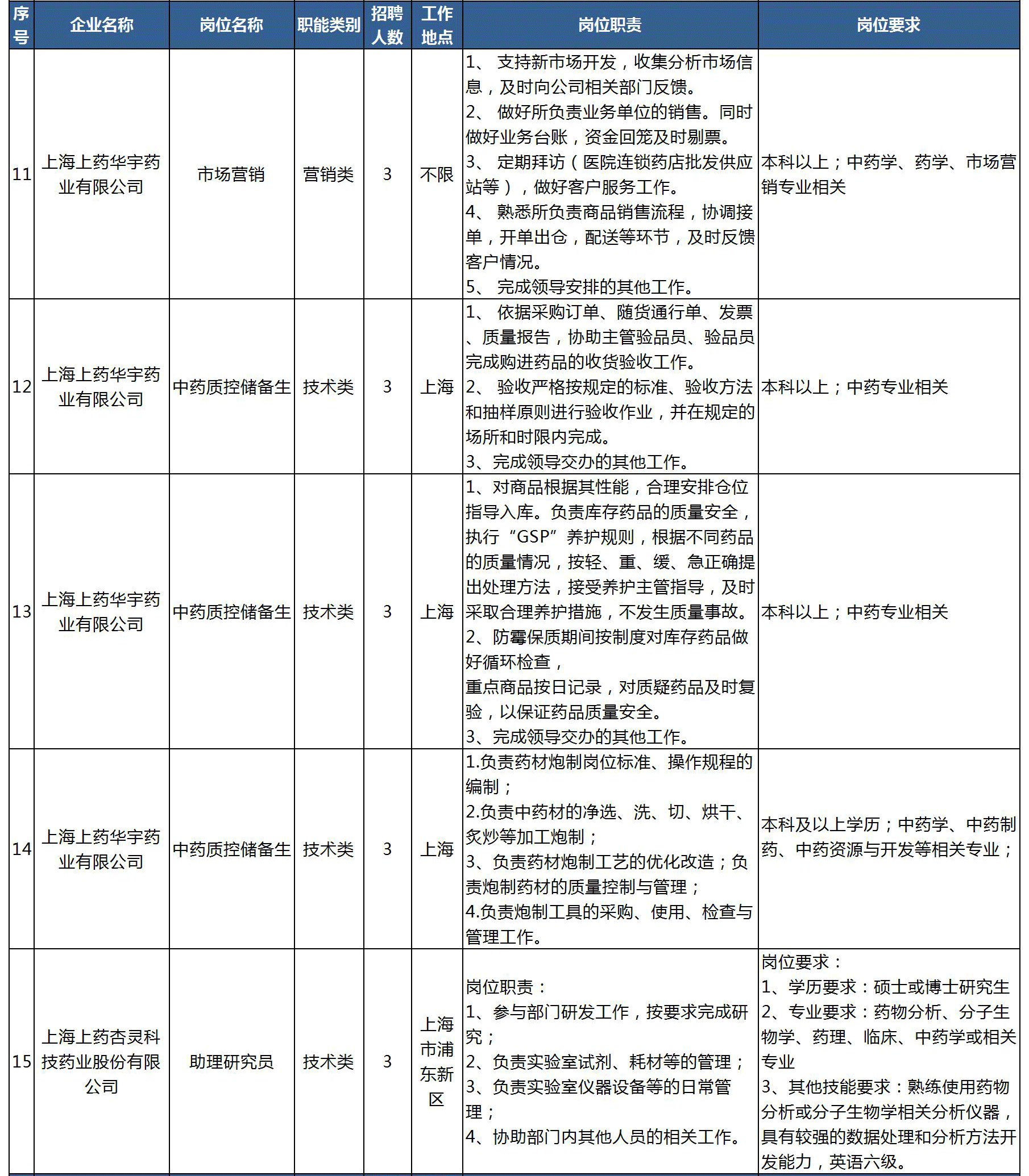 上药集团是集医药研发、工业、分销、零售于一体的大型上市医药产业集团,综合排名稳居全国前列。本次宣讲会,上药集团旗下中药版块的重点企业上海市药材有限公司携下属上海雷允上药业有限公司、上海上药雷允上医药有限公司、上海上药华宇药业有限公司、上海上药杏灵科技药业股份有限公司和上海市药材有限公司中药资源分公司5家单位,带来20多个招聘岗位,100余个招录名额涉及科研、市场、项目管理等多个方面(招聘岗位列表详见文末)。同学们在了解企业和岗位的同时,还能与hr在线互动,获得视频面试的机会!