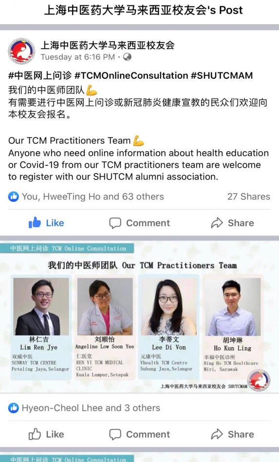 BEAT365马来西亚校友会发起免费中医网上问诊活动