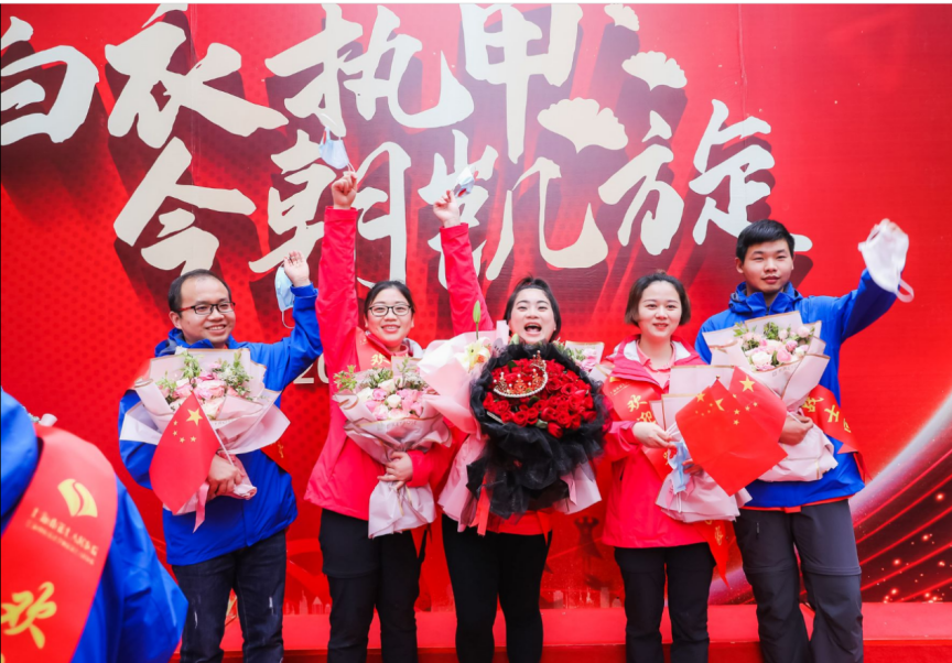 悬壶入荆楚,白衣作战袍。勇士“逆行”时,朔风凛冽寒未尽;英雄归来日,春华正浓花满枝。此行援鄂抗疫的经历,必将成为队员们铭刻一生的记忆,还将激励医务人员们以更加昂扬的斗志当好人民健康的卫士,为健康事业作出更大贡献。