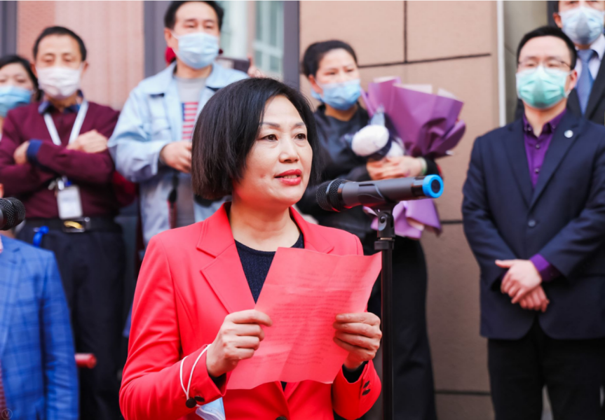 徐玉英致欢迎词。她表示,闻令而动,一夜成军的场景还历历在目,在全国疫情最严峻的时刻,在湖北抗击疫情主战场最紧要的关头,队员们坚决响应党的号召和人民的需要,带着责任和使命,主动请缨,“无论生死,不计报酬”,与武汉人民肩并肩战斗,同新冠病毒面对面较量,援鄂的68天,1632个小时,不仅圆满出色地完成了各项救治任务,还把医院医务工作者的优秀品质、良好作风留在了武汉,为此感到无比骄傲。