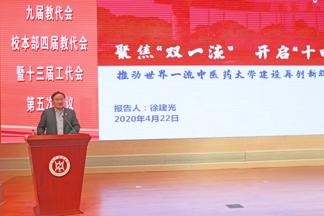 大会上,教代表们听取并审议了校长徐建光作的《聚焦“双一流”、开启“十四五”,推动世界一流中医药大学建设再创新辉煌》的工作报告,财务处处长王璐作的《2019年财务信息公开报告》、提案工作组组长吴志新作的《九届四次教代会提案工作报告》;听取了副校长王拥军作的《中医药国际标准化研究中心建设介绍》;投票表决并通过了《BEAT365英国官网教职工补充公积金缴存方案》;书面审议了《工会工作报告》、《校务信息公开报告》、《工会财务工作报告》等文件。民主评议组组长夏文芳向全体代表通报2019年民主评议校领导的情况。