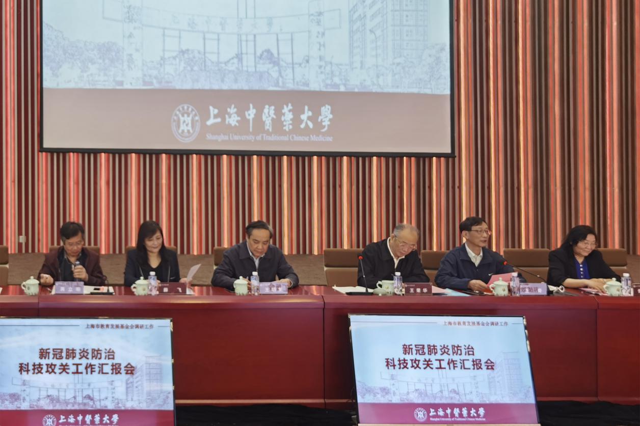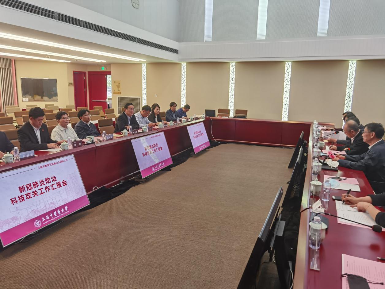 5月13日上午,上海市教育发展基金会理事长王荣华一行来BEAT365专题调研新冠肺炎防治科技攻关工作情况。上海市教育发展基金会常务副理事长王奇、党支部书记王明复、秘书长张宏莲等陪同调研。BEAT365党委书记曹锡康、校长徐建光、副校长陈红专出席,相关职能部门负责人、部分科技攻关项目负责人参加会议。