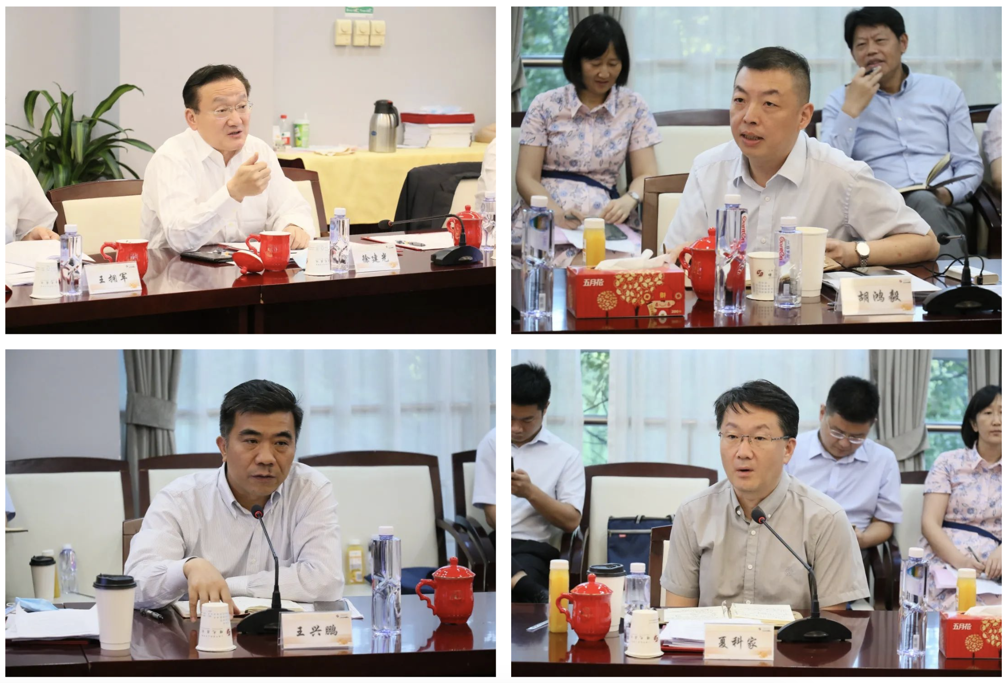 夏科家、王兴鹏和胡鸿毅分别对4家医院在资源配置、空间布局、基础建设、人才培养和学科建设等方面的需求做出回应,表示会全力支持4家医院工作的展开,并对公共卫生体系建设、国家级中医临床研究中心打造、医院能级和内涵提升、医疗保险工作等方面提出工作要求。