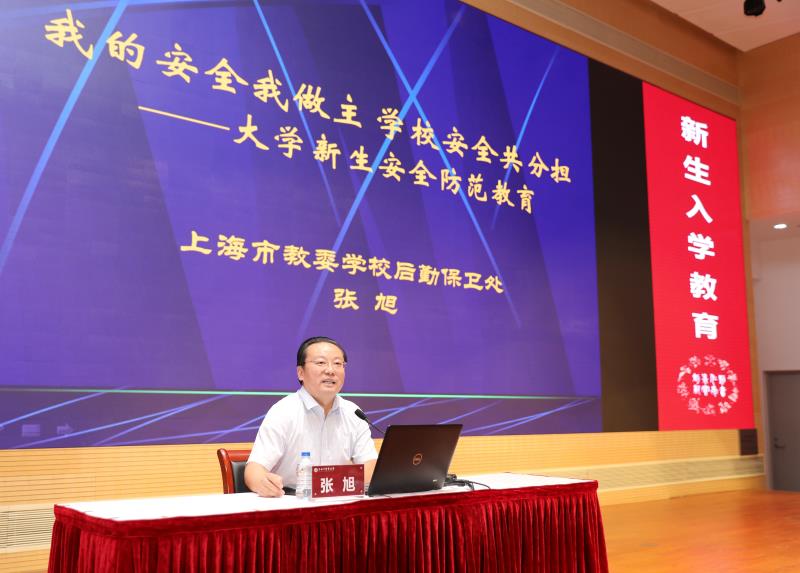 9月9日下午,学校为加强校园防控,提升2020级本科、研究生新生的安全防范意识,为2020级全体新生举办安全教育专题讲座。本次“安全教育”讲座在图书馆裙楼四楼报告厅设立主会场,在各教室设立分会场,采用视频直播形式,主讲嘉宾为上海市教育委员会后勤保卫处处长张旭。