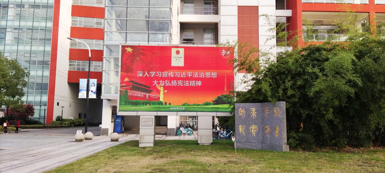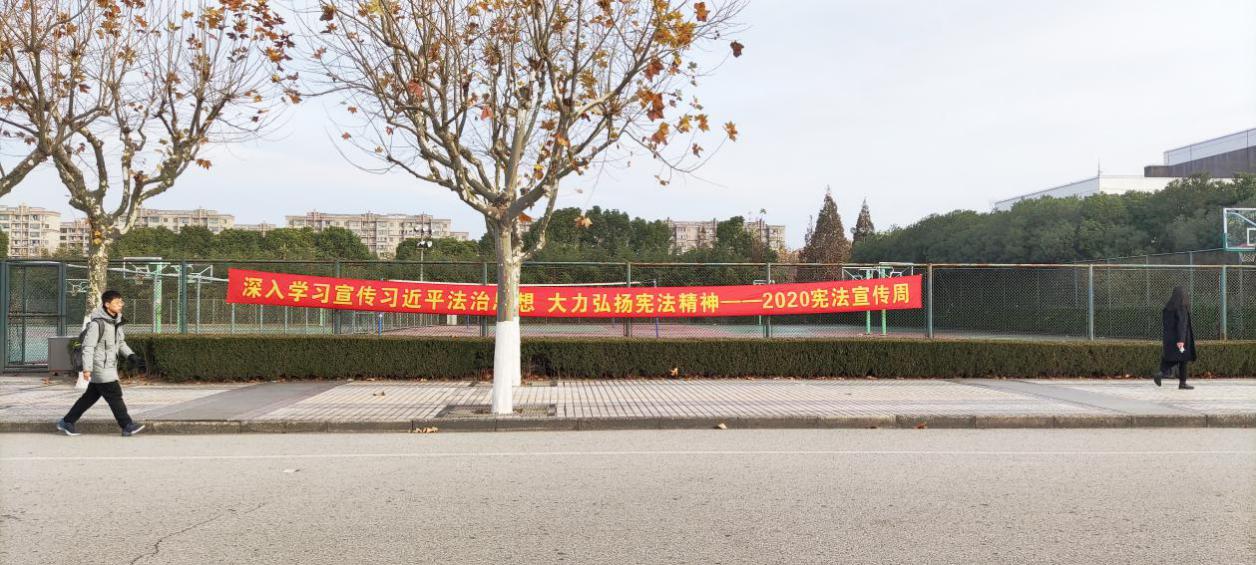 此外,学校还在校园主干道上悬挂横幅,在校内电子屏播放宪法宣传海报,号召师生学习宪法,大力弘扬宪法精神。