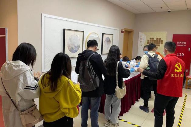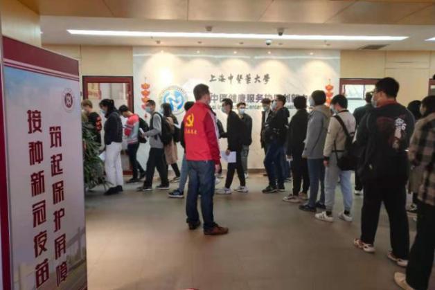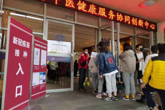各高校师生在接种点有序排队等候