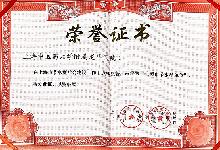 为大力推进节水型机关(单位)建设,充分发挥公共机构节水示范引领作用,上海市水务局、上海市机关事务管理局经联合考评,近日新命名一批节水型机关(单位),附属龙华医院榜上有名,荣获“上海市节水型单位”称号。