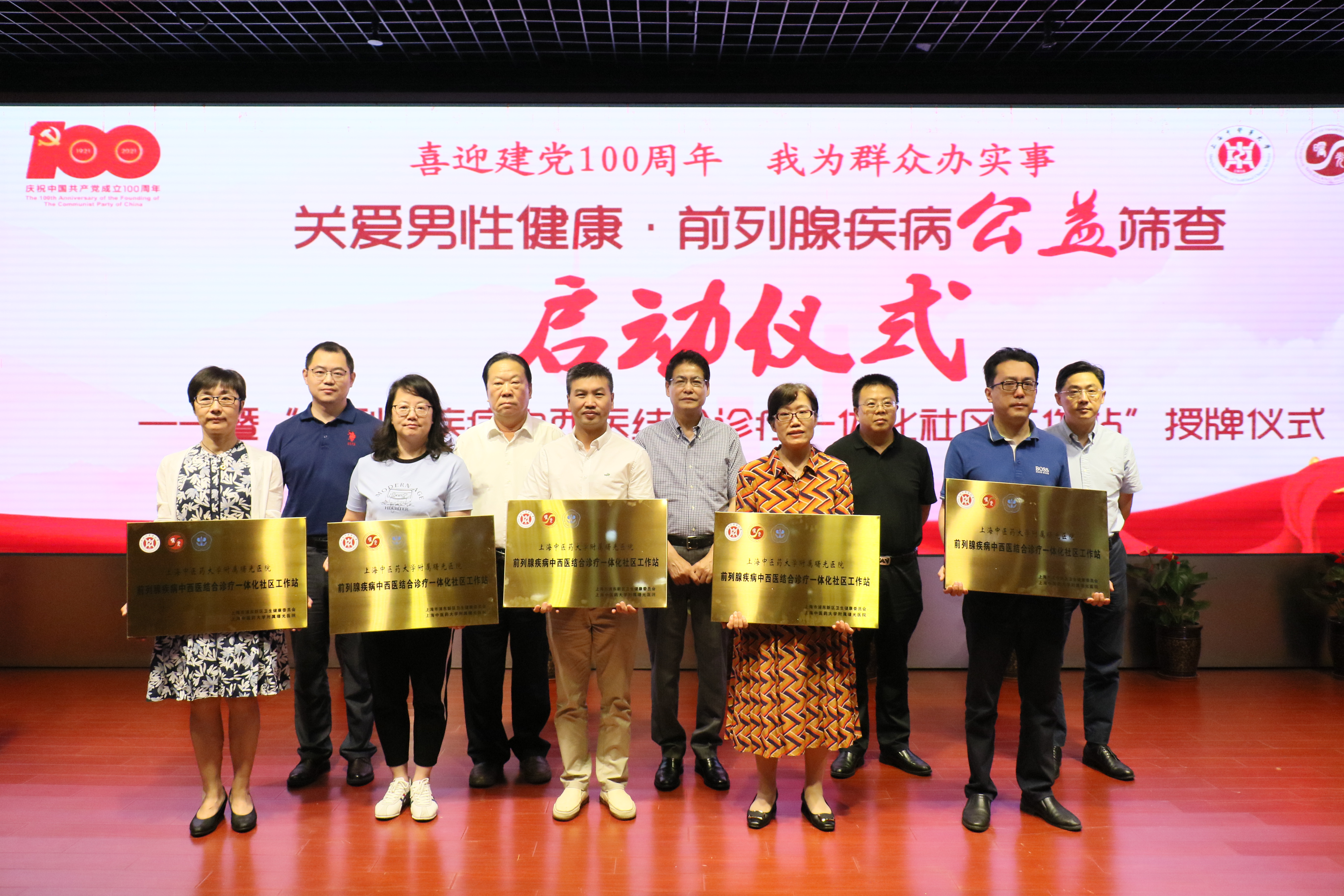 授牌仪式上,领导们向到场的社区负责人授予“前列腺疾病中西医结合诊疗一体化社区工作站”铭牌,期待未来泌尿中心能与社区共同搭建前列腺疾病诊疗一体化平台,造福浦东百姓。