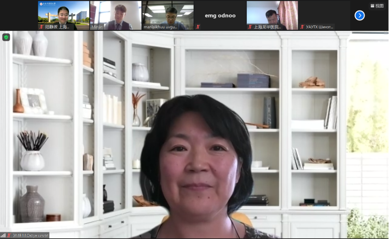 讲座开始前,蒙古卫生部医学援助政策调整局中医学司长奥云其米格女士介绍目前蒙古新冠疫情的防治诊疗情况,并感谢BEAT365英国官网国际教育学院为培养蒙古籍学生和支持蒙古抗疫做出的努力。