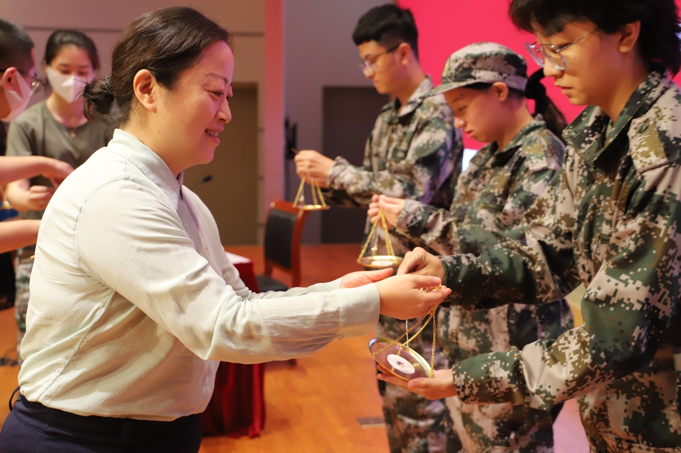 讲座伊始,沈岚为新生代表送上新生礼物——戥秤,寓意着新生们能够拥有一颗平等对待所有患者的仁心,并祝愿新生称心如意,希望新生更快地融入大学的学习生活,融入中药学院的大家庭。