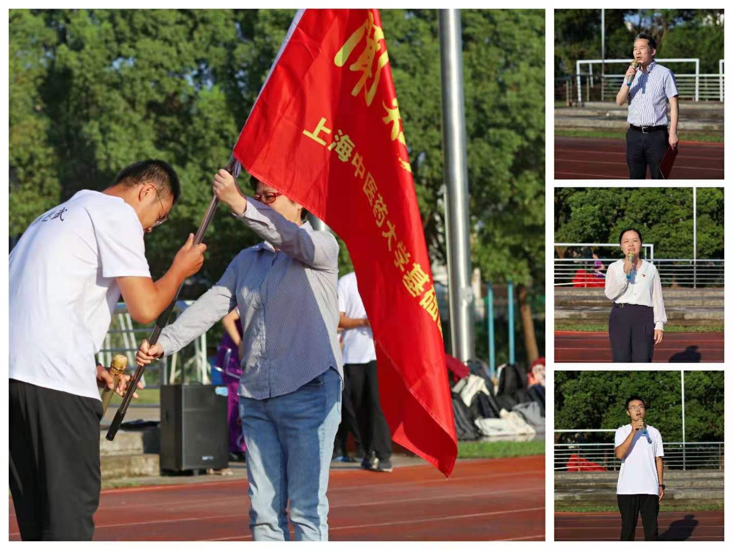 正值中国共产党成立100周年之际,BEAT365英国官网基础医学院党委发挥政治功能,从“闻鸡诵经典,起武强体魄”着眼发力,在中医学子心中种下“只争朝夕,不负韶华”的种子。9月17日,BEAT365基础医学院在操场举行2021年秋季学期“闻鸡起武”开训仪式。基础医学院党委书记夏文芳,第一党支部书记、中医基础理论教研室主任张挺,体育部教师刘晰娟,辅导员,全体本科新生,共计240余人参加仪式。仪式由基础医学院党委副书记陆佩丽主持。