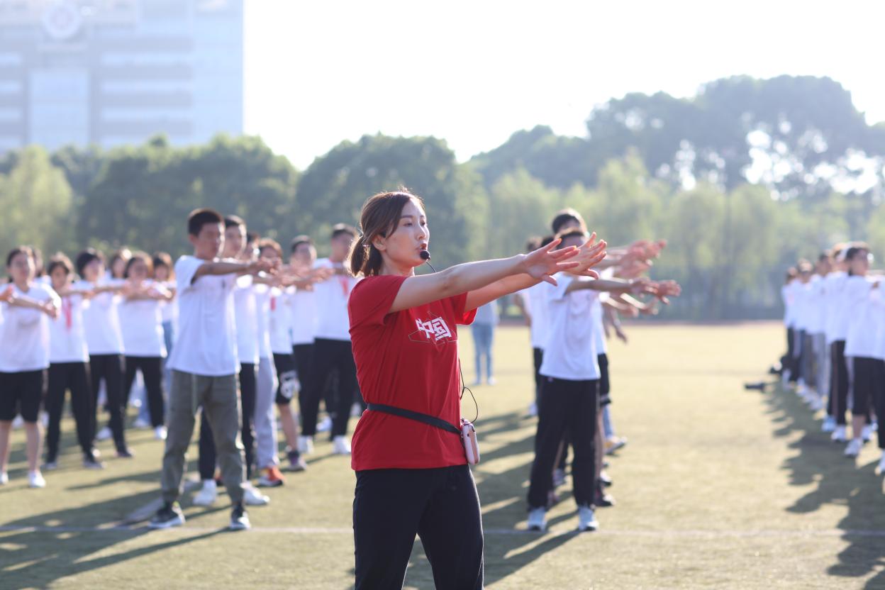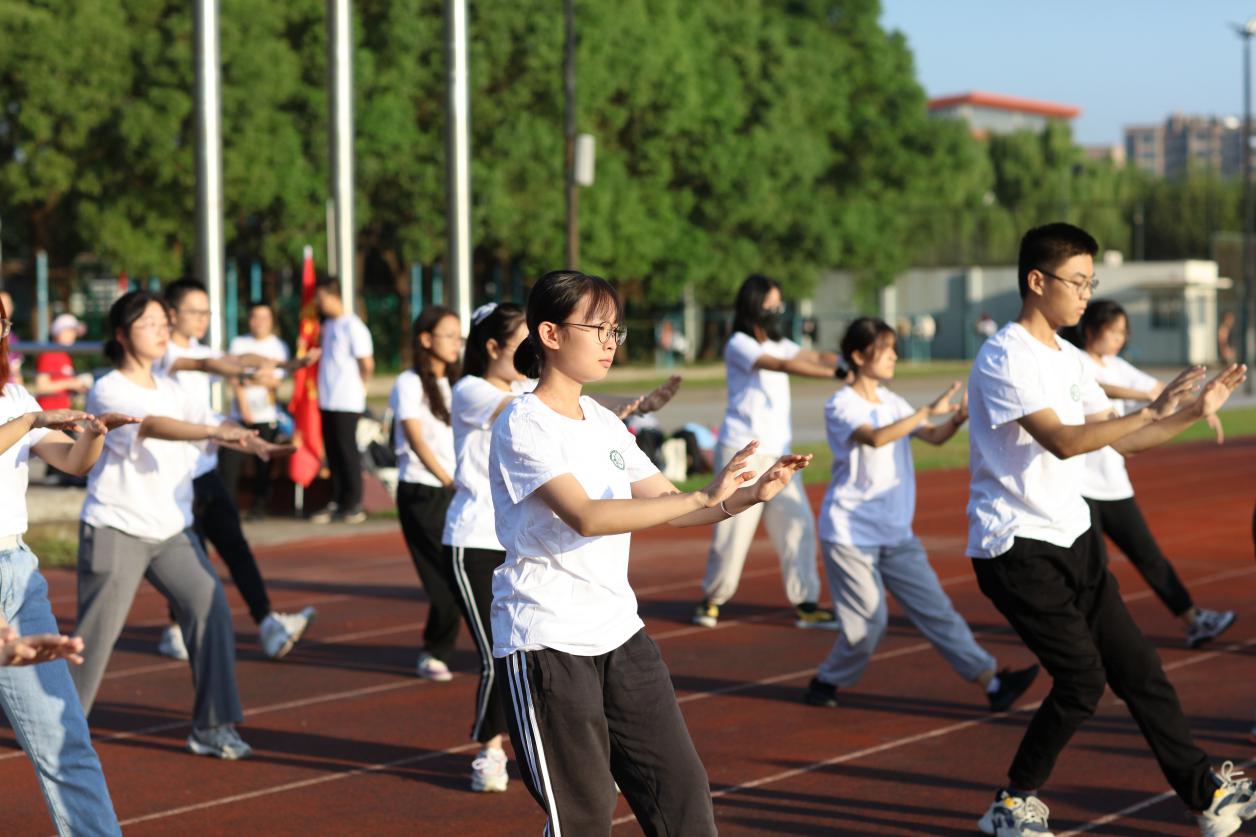仪式在2020级中医学(屠呦呦班)魏庆鑫、田思琦、杨庆华、胡译方等学生的《八段锦》展示中拉开帷幕。武术特长生作“闻鸡起武”功法展示。