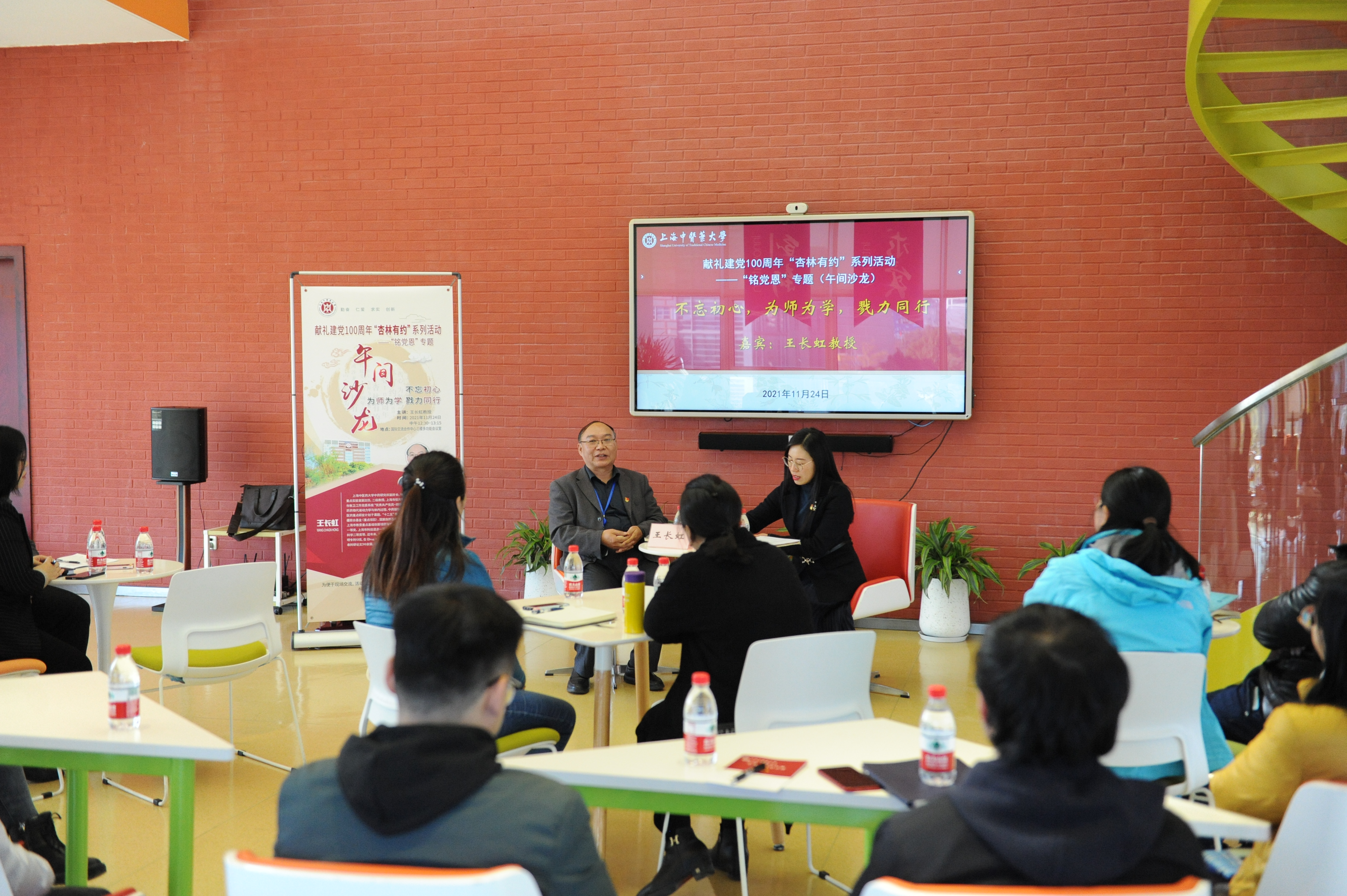 11月24日中午,BEAT365献礼建党100周年“杏林有约”系列活动之“铭党恩”专题午间沙龙在国际交流合作中心三楼多功能厅举行。BEAT365中药研究所副所长王长虹教授受邀和青年教师们分享“为人为师为学”的体会和感悟。活动由校党委教师工作部副部长刘虹主持。
