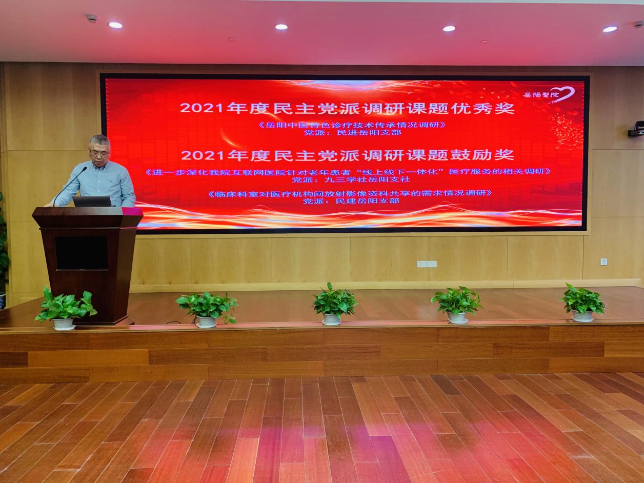 会议表彰了医院2021年度民主党派调研课题获奖项目。