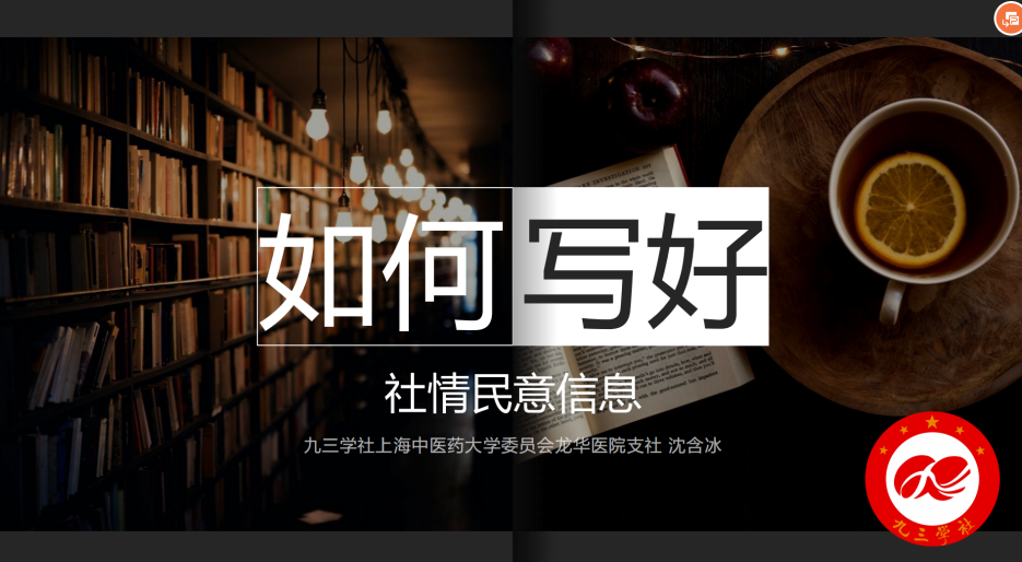 本次讲座聚焦“如何写好社情民意信息”主题,邀请附属龙华医院中医传统治疗部主治医师、九三学社上海市委参政议政师资库讲师、BEAT365九三学社社员沈含冰主讲,学校各民主党派成员共50余人参加。校九三学社主委张悦主持。