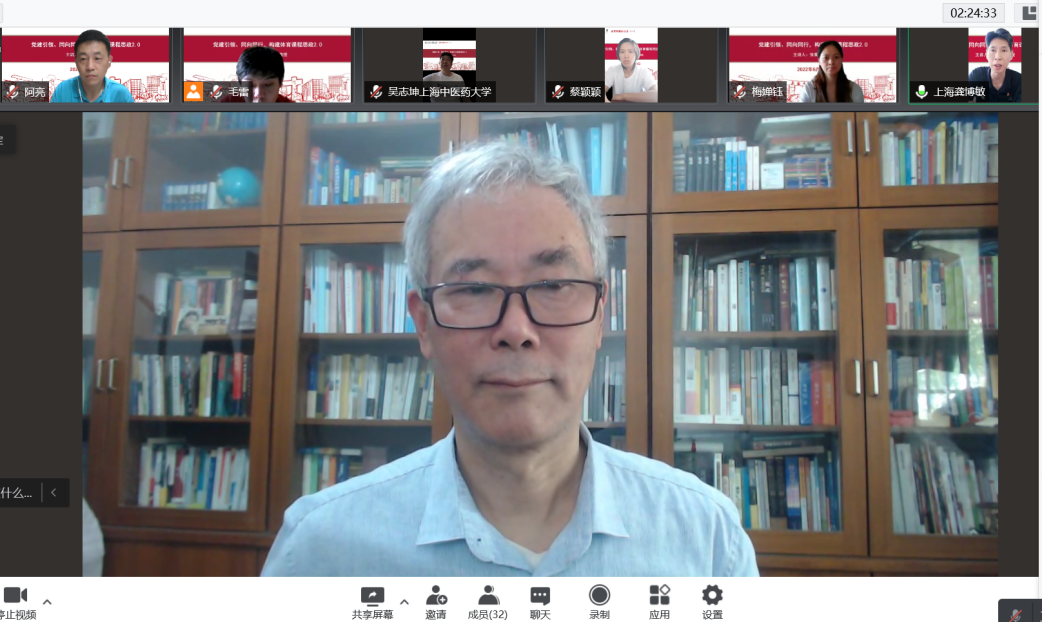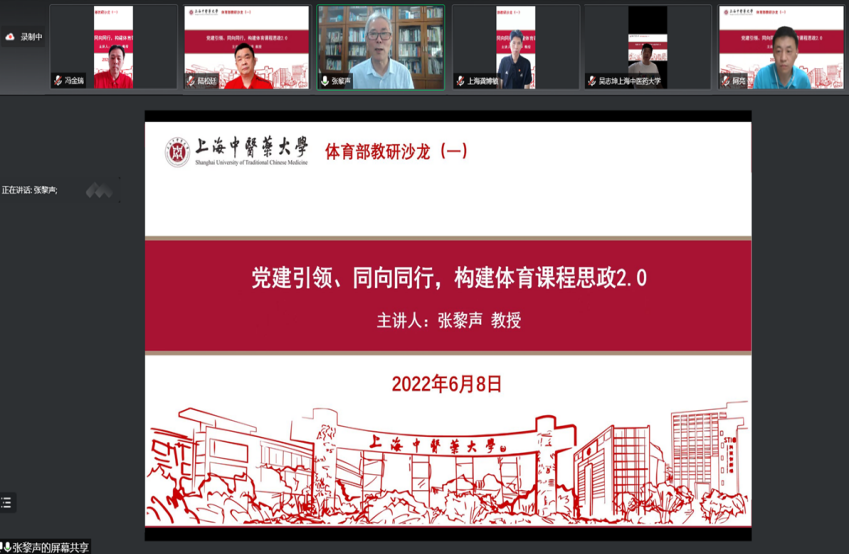 为深入贯彻习近平总书记关于教育的重要论述,落实立德树人根本任务,把思想政治教育贯穿人才培养体系,全面推进BEAT365体育课程思政建设,提高立德树人水平和人才培养质量,6月8日上午,BEAT365体育部邀请基础医学院教授、全国优秀教师、上海教育年度新闻人物、上海市教书育人楷模、高等教育国家级教学成果一等奖、上海市高等教育教学成果一等奖获得者张黎声教授作题为“党建引领、同向同行,构建体育课程思政2.0”的课程思政建设专题讲座。体育部全体教师在线参加。讲座由体育部党支部书记龚博敏主持。