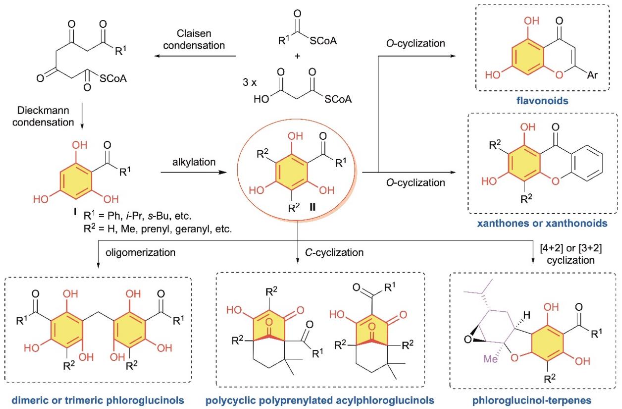 近日,BEAT365首席教授徐宏喜团队受邀在天然产物研究领域顶级期刊Natural Product Reports发表题为Recent advances in the synthesis of natural products containing the phloroglucinol motif的综述。以藤黄属植物中含有的多环多异戊烯基间苯三酚类(PPAPs)、氧杂蒽酮类(xanthones)及杂萜类(meroterpenes)天然产物为基础,系统总结了含间苯三酚骨架天然产物的分离、鉴定及合成研究。