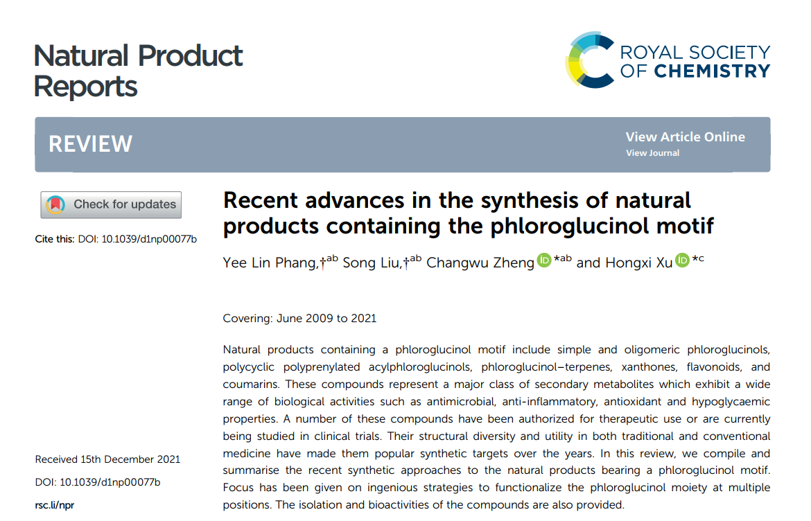 徐宏喜和郑昌武团队在天然产物顶级期刊NPR发表藤黄属植物活性成分相关综述