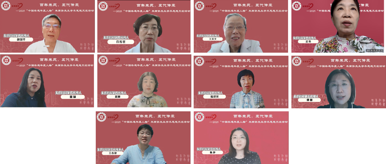 7月1日上午,“百年朱氏,五代传承”2021“中国非遗年度人物”朱南孙先生学术思想交流活动线上举行。上海市卫生健康委员会副主任、市中医药管理局副局长胡鸿毅,上海市非物质文化遗产保护协会会长高春明,上海市名中医、上海市中医药学会学术流派分会主任委员胡国华,全国各妇科流派代表性传承人,上海市中医药学会学术流派分会委员,BEAT365附属岳阳中西医结合医院党政领导班子等出席。大会由医院副院长姚政主持。