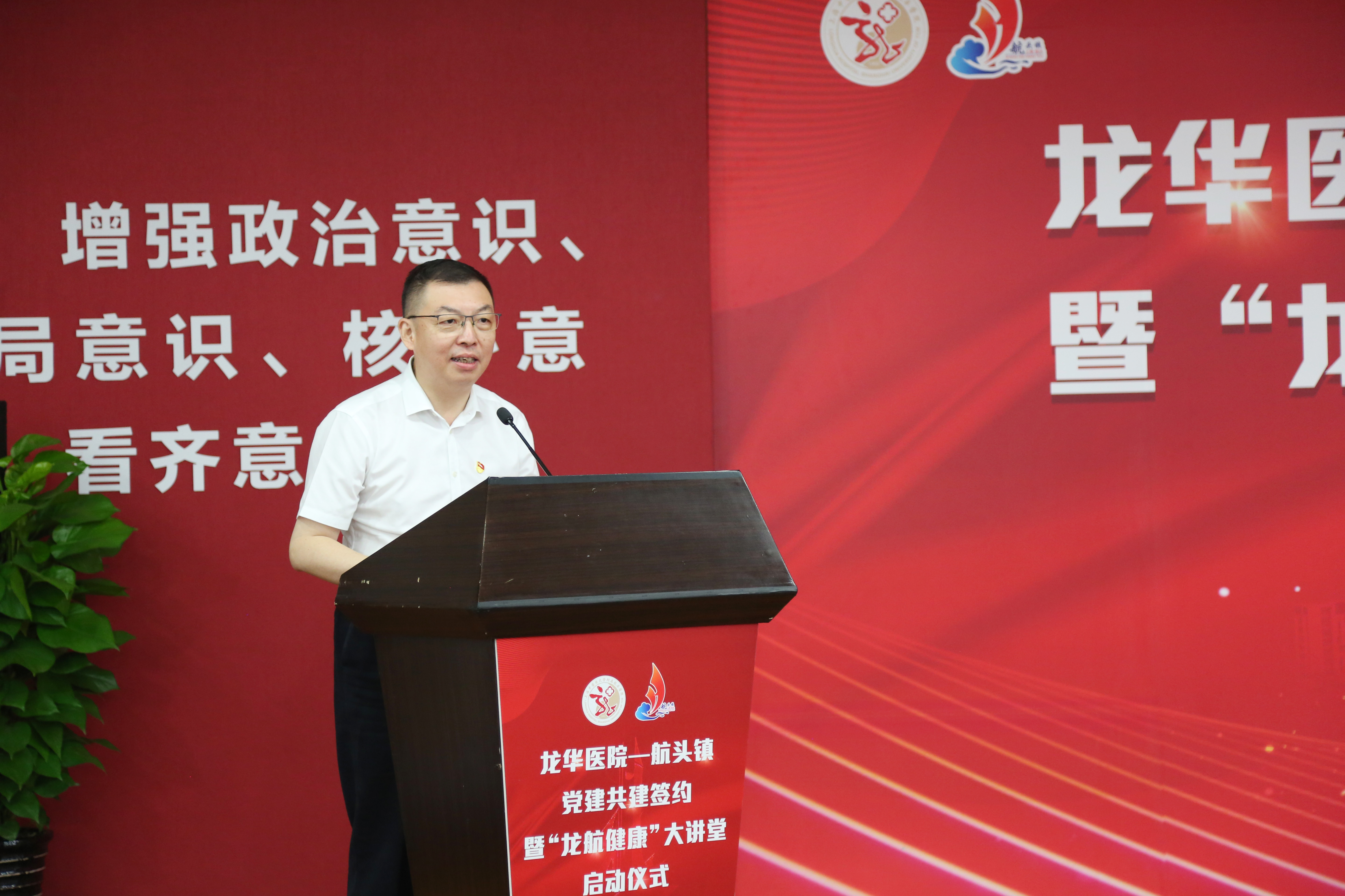 为满足城乡居民多层次医疗卫生服务需求,推动龙华医院国家医学中心建设,以高质量党建引领高质量发展,迎接党的二十大胜利召开,9月9日上午,附属龙华医院与航头镇举行党建共建签约暨“龙航健康”大讲堂启动仪式。