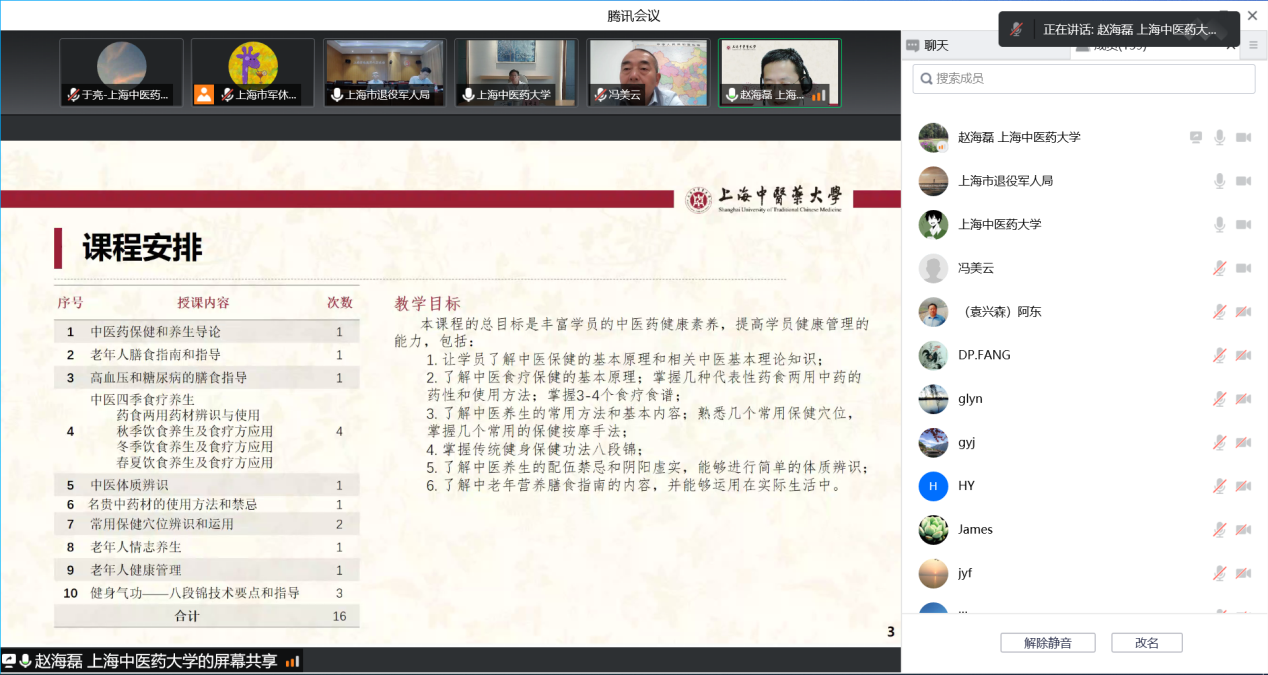 9月16日下午,上海市军休老年大学委托BEAT365开办的中医药养生与保健培训班启动仪式举行,我校党委书记曹锡康、上海退役军人事务局副局长屈新平、BEAT365公共健康学院院长赵海磊、市军休老年大学校长崔宗胜,部分授课专家和全体学员参加启动仪式。仪式由崔宗胜主持。