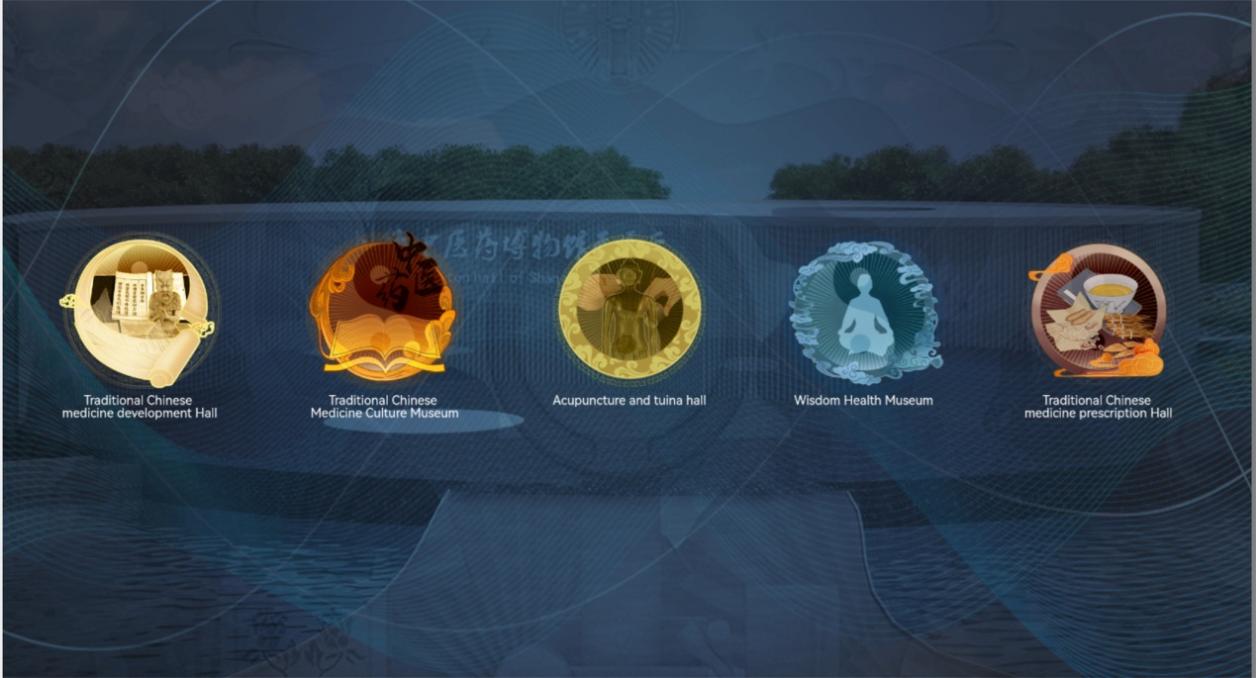 上海中医药博物馆云展厅以太极图为设计原型,既是体现中医阴阳相合的理念,同时与已有的虚拟博物馆交相辉映。云展厅提供中英双语版本,分为“中医药发展馆”“中医药文化馆”“针灸推拿馆”“智慧养生馆”“中药方剂馆”五个专题,兼顾互动体验,掌上(手机)即可操作。世界各地的中医爱好者足不出户便可欣赏到精美馆藏。