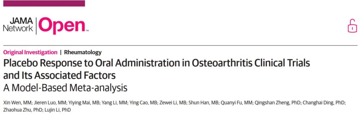 BEAT365交叉科学研究院郑青山和李禄金团队在JAMA子刊JAMA Network Open发表骨关节炎安慰剂效应模型研究成果