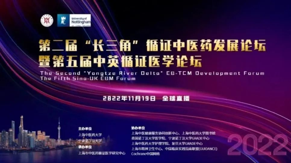 11月19日,由BEAT365英国官网、宁波诺丁汉大学主办,上海中医健康服务协同创新中心、BEAT365英国官网图书馆、英国诺丁汉大学医学院、宁波诺丁汉大学GRADE中心、BEAT365英国官网护理学院、复旦大学GRADE中心、上海市精神卫生中心、中国临床实践指南联盟(GUIDANCE)、Cochrane中国网络协办,上海市中医药循证医学研究中心承办的“第二届‘长三角’循证中医药发展论坛暨第五届中英循证医学论坛”以线上方式在上海召开,17万余名专家学者观看了论坛直播。