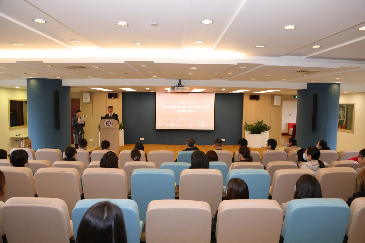 王拥军致欢迎词,并介绍了近年来学校国际教育的发展情况,特别是学校致力于打造“留学上中医”来华留学品牌和具有“上中医”文化特色的国际教育理念。