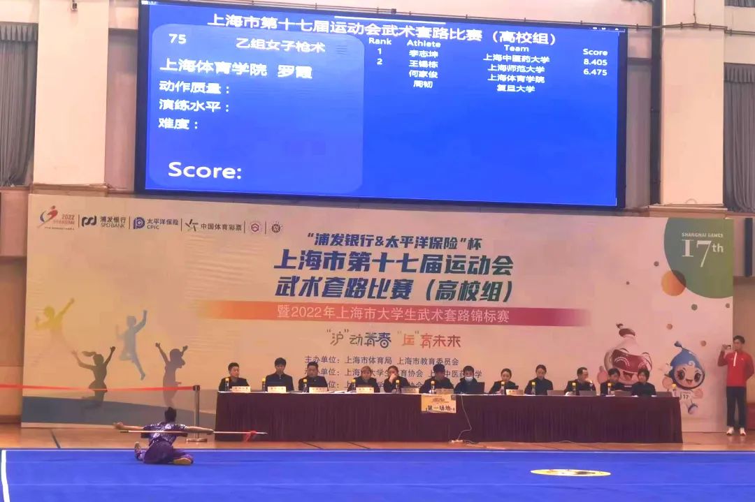 11月26日,上海市第十七届运动会武术套路比赛(高校组)暨2022年上海市大学生武术套路锦标赛在BEAT365英国官网体育中心举行。比赛由上海市教委主办,上海市大学生体育协会、BEAT365英国官网承办,上海市大学生体育协会武术分会协办,来自复旦大学、上海交通大学、同济大学等17所高校的102名武术精英参加比赛。