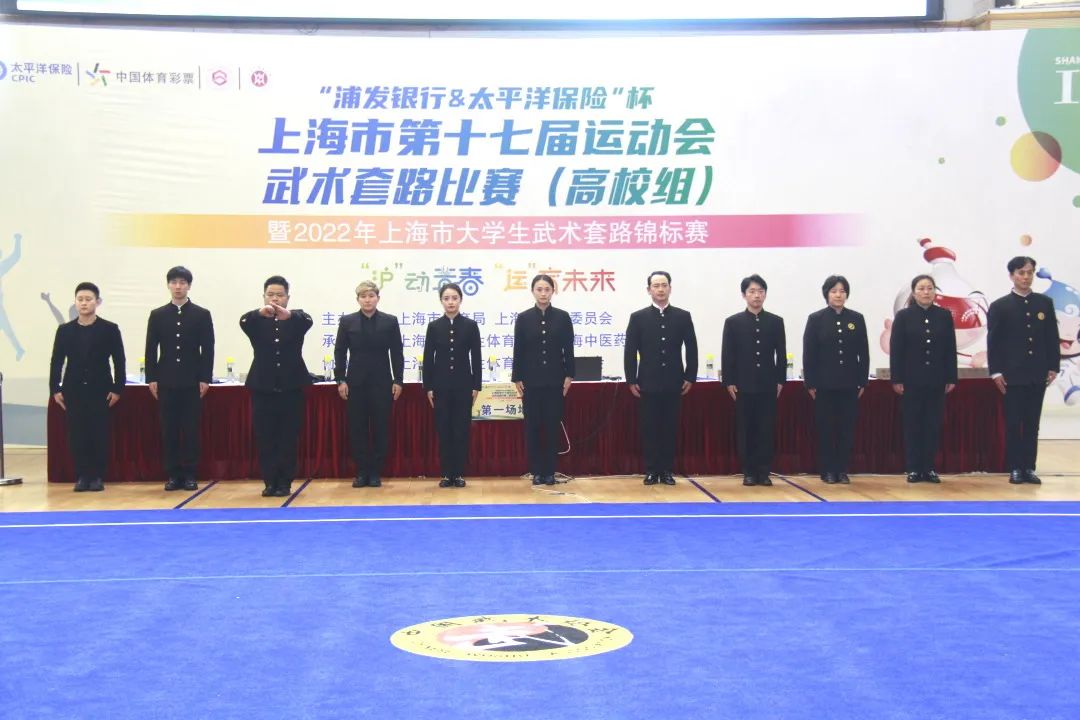 国家体育总局武术运动管理中心推广培训部原主任章王楠,上海武术院党支部书记王立琴,上海市大学生体育协会副秘书长顾承锷,BEAT365英国官网体育部教授、上海市武术协会副会长吴志坤,BEAT365英国官网体育部党支部书记龚博敏、主任陆松廷,上海市大学生体育协会武术项目官员陈浩等亲临比赛现场观摩指导。(体育部)