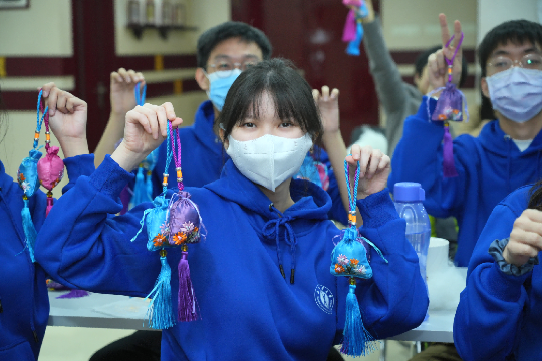 上午,师生们参观了南京东路蔡同德堂,在讲解员的带领下,了解蔡同德堂的发展渊源,接触了诸多珍贵药材,充分领略中药的魅力,感受传统中医的发展成就。随后,全体师生在讲解员的指导下亲手制作了传统配方的特色香囊,并深入了解香囊的保健原理和文化内涵。