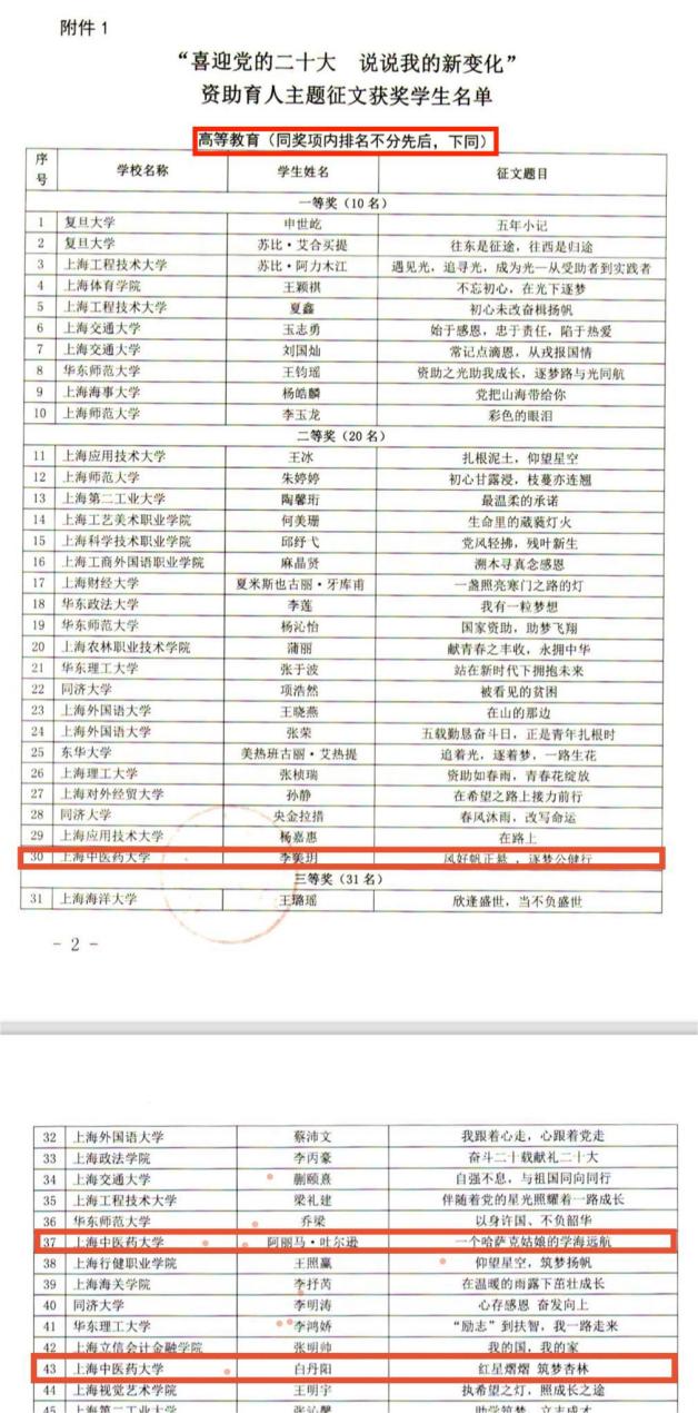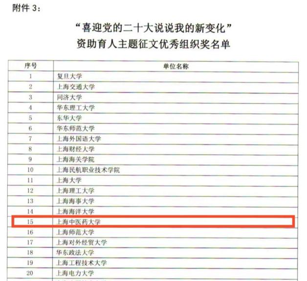 近日,上海市学生事务中心公布了“喜迎党的二十大 说说我的新变化”资助育人主题征文的评选结果,BEAT365英国官网获得佳绩。BEAT365三位学生分获二等奖1项、三等奖2项,三位教师获评为“高等教育组优秀指导教师”,BEAT365获“优秀组织奖”。