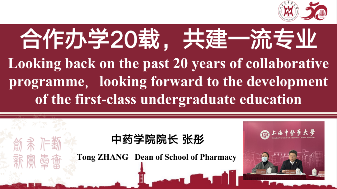 在双方合作办学20周年之际,舒静对双方合作寄予美好祝愿,并提出中外合作办学应围绕一流学科建设,坚持“中国特色、世界一流”的建设原则,聚焦高质量内涵,明确高质量发展的方向。她希望双方通过合作办学,全面发挥各自优质资源的辐射和带动作用,继续推动“双一流”药学专业的建设和发展。