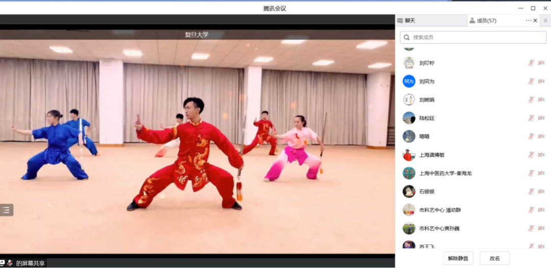 时多宣布比赛开幕。本次比赛以弘扬武术文化为核心,鼓励学生运用丰富多彩的武术艺术展示形式,反映当代学生刚健有为、自强不息的精神。今年比赛继续在“云端”虚拟赛场开展。比赛分为高校组10组和中小学组8组,通过初赛,共有来自上海大中小学的11支参赛队伍进入决赛,在线一决高下。