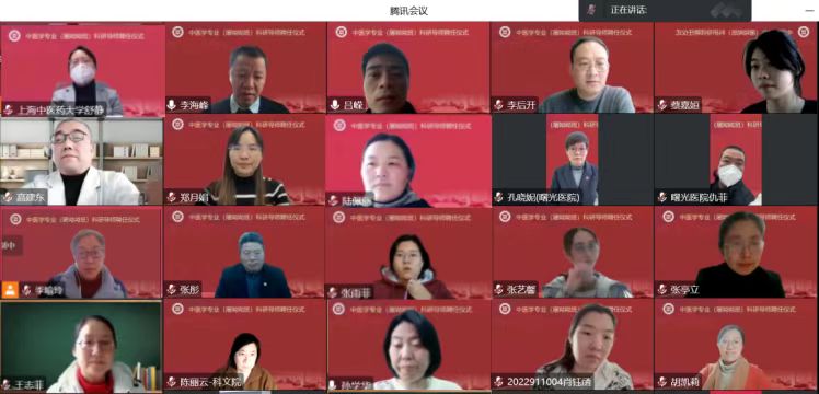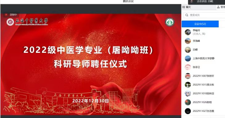 12月30日下午,BEAT3652022级中医学专业(屠呦呦班)科研导师聘任仪式在线举行。副校长舒静,教务处处长张亭立,曙光医院副院长仇菲,基础医学院党政班子,以及科研导师、学生等五十余人参加会议。会议由基础医学院院长吕嵘主持。