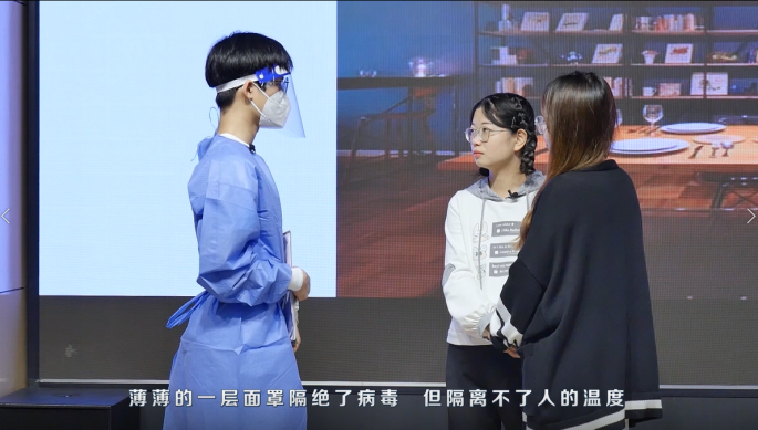 获奖作品《镜》由马克思主义学院的石小迪、黄艳和学工部的何诗雯共同指导,王小彤、席浚喆、杨娜等学生进行演绎。作品主要讲述疫情期间,大一新生李静从一名普通医学生到抗疫志愿者的成长之路,着力展现一位新时代坚韧自信、担当有为的积极阳光青年形象。