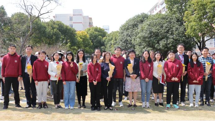 现场学生代表将自己在寝室种下的向日葵献给老师,感谢老师们的栽培培养和关心关爱,并表示要刻苦学习,传承师长博采众长、严谨治学的学风,发扬前辈踔厉奋发、锐意进取的精神。