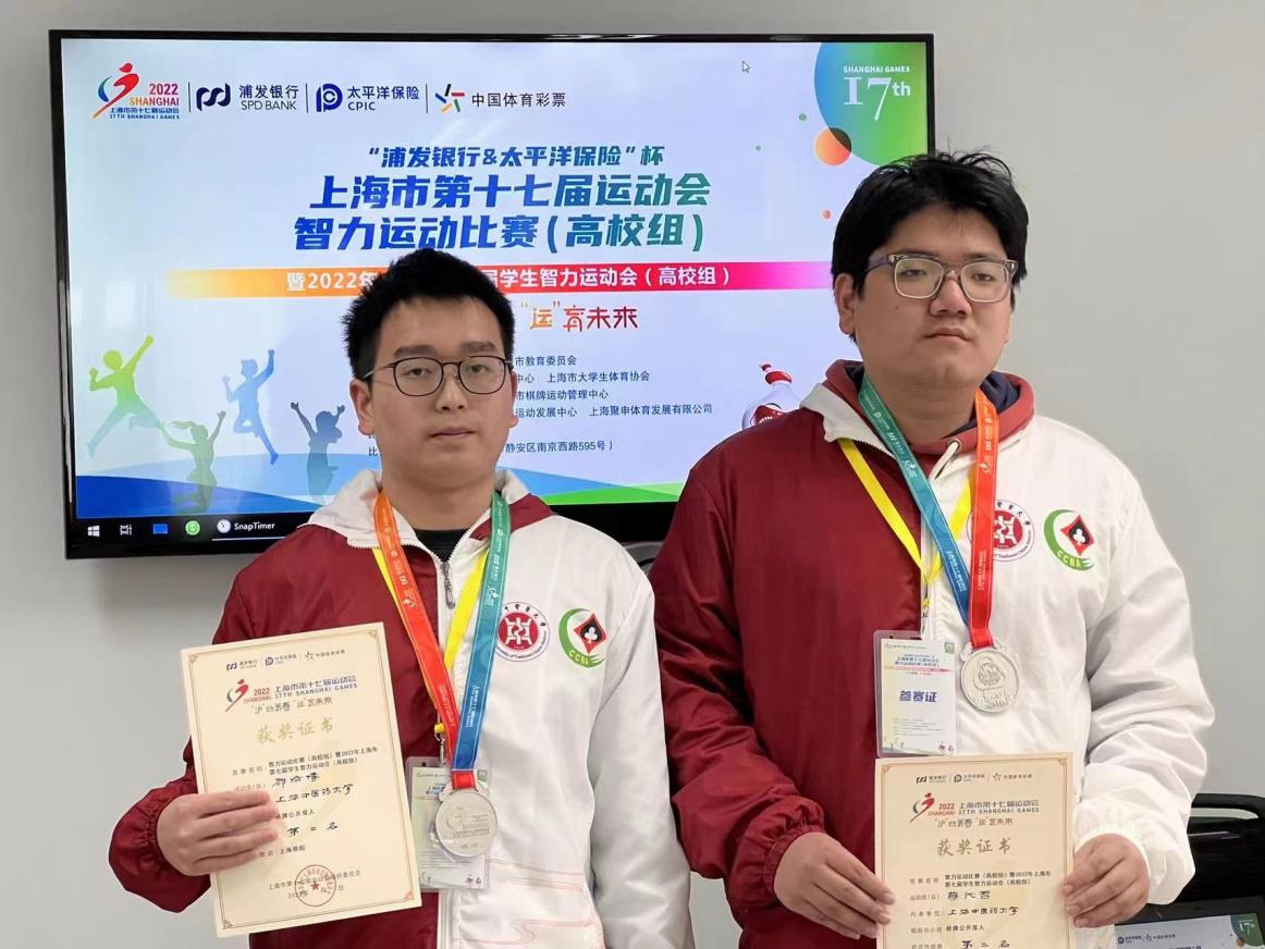 在上午的双人赛中,BEAT365康复医学院蒋沁哲和龙华临床医学院邵渝博沉着冷静,默契配合,分别以87.5%,60.8%,56.4%的得分率击败来自上海体育学院、东华大学及来自上海交通大学的众多高手,最终惜败上海财经大学,获得亚军。