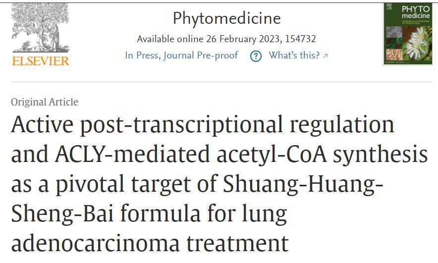 在国家重大新药创制子课题以及国家自然科学基金的支持下,陈文连团队选取临床疗效确切的扶正复方——双黄升白颗粒,并与BEAT365英国官网附属龙华医院徐振晔、王中奇团队和BEAT365英国官网交叉科学研究院葛广波团队开展了联合研究,揭示了该复方抗肺癌的分子新机制,研究成果以题为Active post-transcriptional regulation and ACLY-mediated acetyl-CoA synthesis as a pivotal target of Shuang-Huang-Sheng-Bai formula for lung adenocarcinoma treatment的研究论文形式于近日发表于国际权威学术期刊Phytomedicine(《植物药》)上。