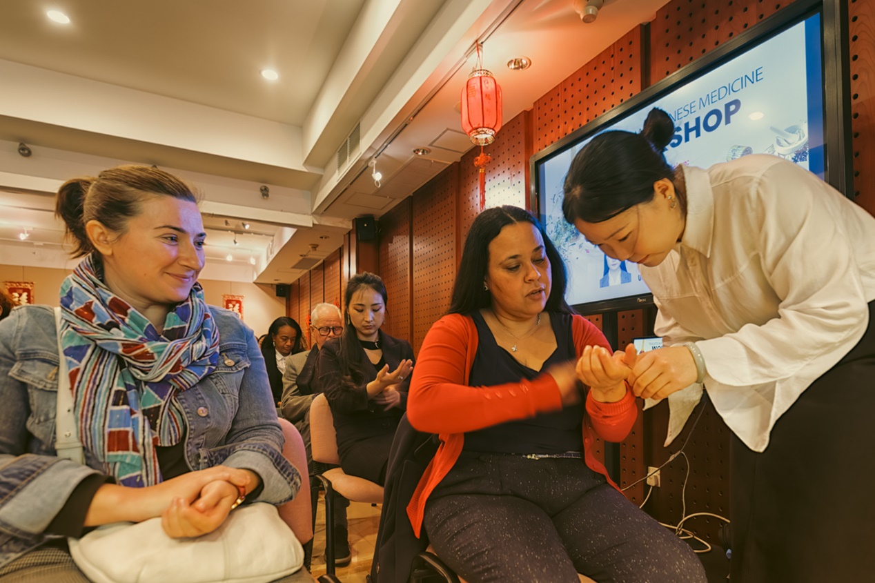 讲座中,张珉以传统医学为切入点,讲述了中医在传统医学中的重要性,并就阴阳、五行、经络、穴位等中医药的基本理论作介绍。张珉还就中药、食疗、针刺、艾灸、推拿、拔罐和功法等中医药多元化的治疗方式进行详细阐述,为惧怕疼痛但又想尝试中医药治疗的当地患者提供新思路。