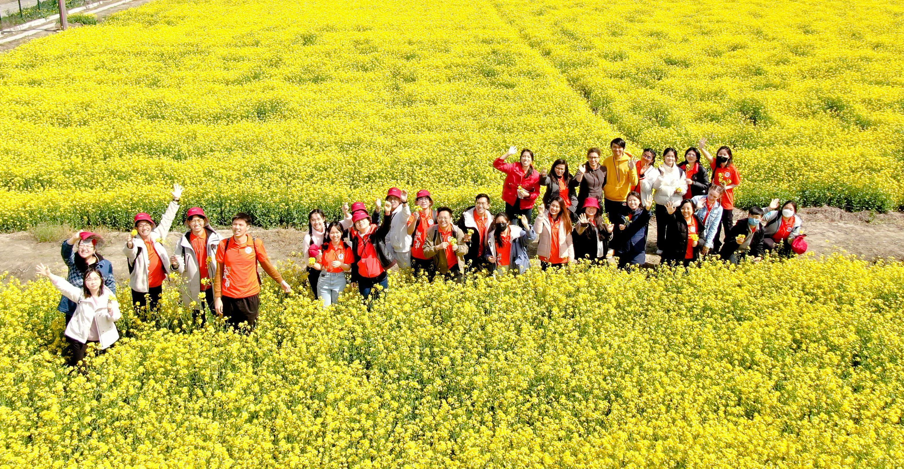 随后,全体师生驱车前往雉趣园体验。雉趣园拥有3大板块、9大主题和近40个科普点,是一座集雉鸡核心养殖区、生态种养展示区和科普互动体验为一体的科普教育基地。国际学生在雉趣园赏味青团、学习油菜花手作。工作人员带领国际学生体验了制作青团的过程,同学们在感受中华传统手艺的同时,也体悟着深厚的文化底蕴。传统文化跨越国界,伴随着青团的飘香存留在每位同学心间。油菜花的花语是“加油”,同学们在乡间感受阳春三月的新鲜空气,并在手工坊制作油菜花工艺品,欢声笑语回荡在空气与暖阳中,同学们释放了压力,找寻到了自我。