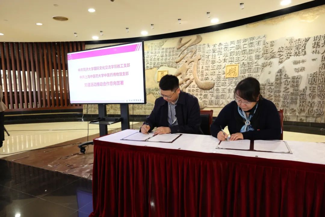 活动伊始,上海中医药博物馆党支部和同济大学国际文化交流学院教工党支部签署党建活动推动合作意向书,双方有意向围绕党建经验共享、工作机制共建、党建平台共建、精神文明共创等方面合作开展党建活动,实现“推动发展、服务学生、凝聚人心、促进交流”的目标。在双方教师和留学生代表的见证下,上海中医药博物馆党支部副书记郭峰、同济大学国际文化交流学院教工党支部副书记程妤代表双方签署合作意向书。同济大学本科生院党支部也参加了相关活动。