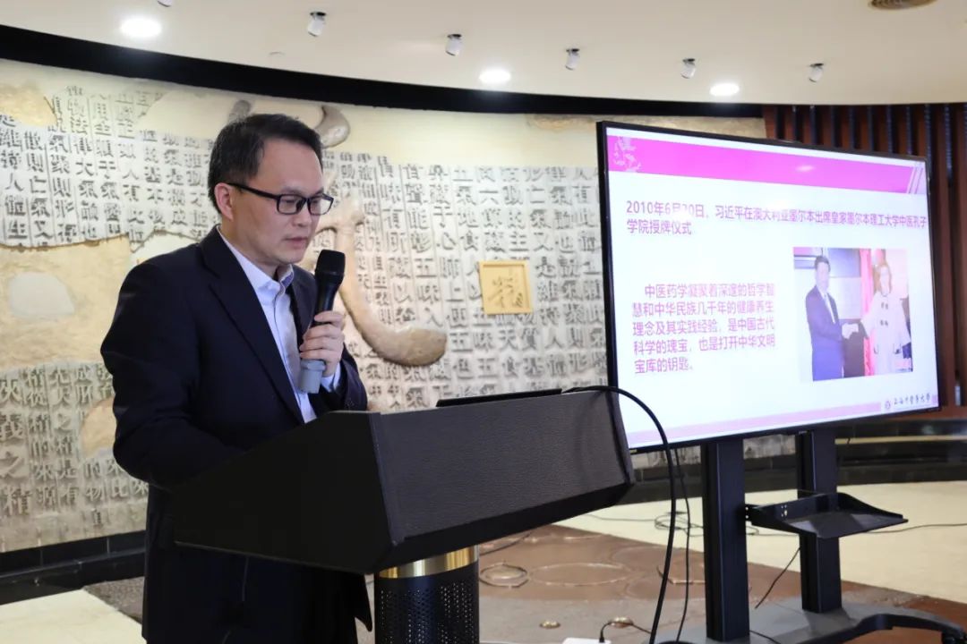 上海中医药博物馆是进行中医药文化保存、研究和传播的重要机构,肩负着传承中医药文化的重要使命。上海中医药博物馆党支部书记、馆长李赣作理论学习报告,引领在场人员学习习近平总书记关于中医药工作的重要论述和重要指示精神,激励教师们树立中医药文化自信,切实把中医药这一宝贵财富继承好、发展好、利用好、传播好,并希望留学生们通过“了解中医药、体悟中医药”,进而“认同中医药、热爱中医药”,成为中医药文化国际传播的有力推动者。