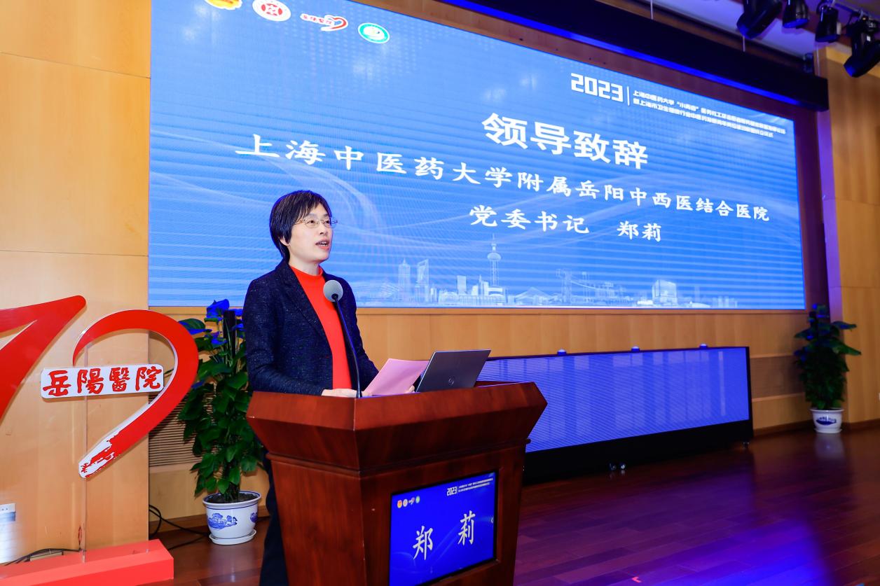 岳阳中西医结合医院党委书记郑莉致欢迎辞,她表示,联盟将通过建立共建平台实现工作融合,进一步推动并优化各成员单位间的资源共享、工作联动和服务青年的长效合作机制,为中医药事业的传承创新发展注入新的活力,提供新的动能。