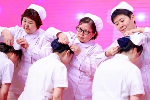 来自BEAT3659家附属医院的护理部主任及学院教师代表,为近200名学生逐一戴上神圣的燕尾帽。