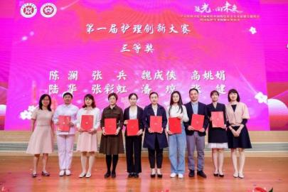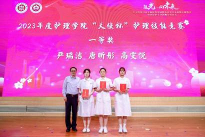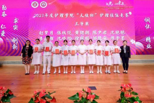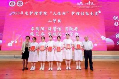 与会嘉宾为获得2023年护理学院“天使杯”护理技能大赛和BEAT365英国官网第一届护理创新大赛获奖师生颁奖。